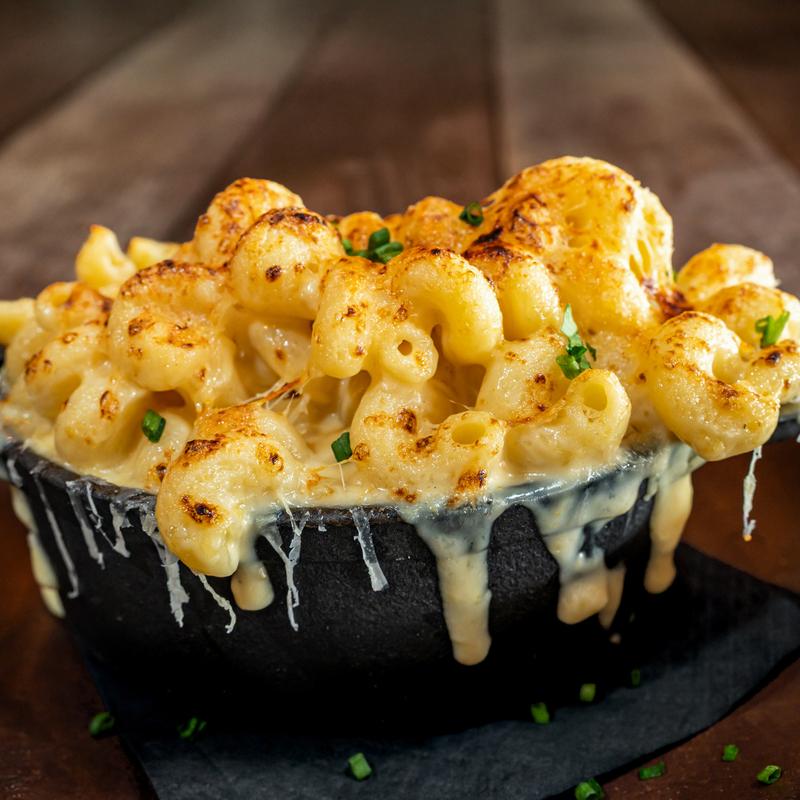 Cavatappi pasta, leeks, muenster, jack, velveeta, parmesan.